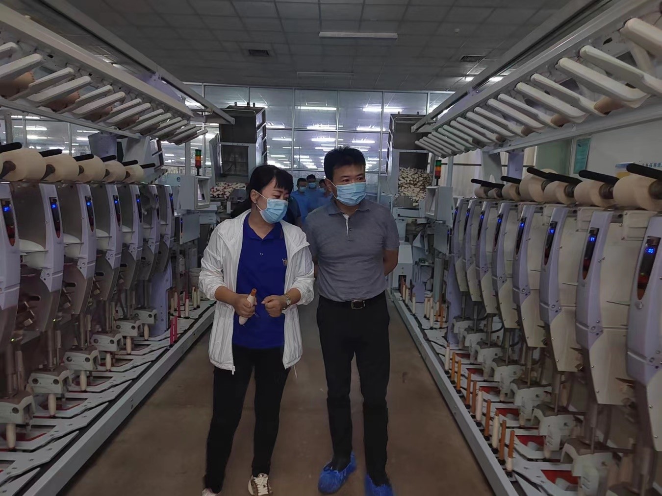 盧剛首先到元首紡織生產(chǎn)車(chē)間實(shí)地查看了環(huán)錠紡、賽絡(luò)紡、轉(zhuǎn)杯紡等各條生產(chǎn)線生產(chǎn)運(yùn)行情況,詳細(xì)了解了公司經(jīng)營(yíng)情況和轉(zhuǎn)型升級(jí)舉措,并對(duì)公司的未來(lái)發(fā)展方向提出積極地建設(shè)性意見(jiàn)。