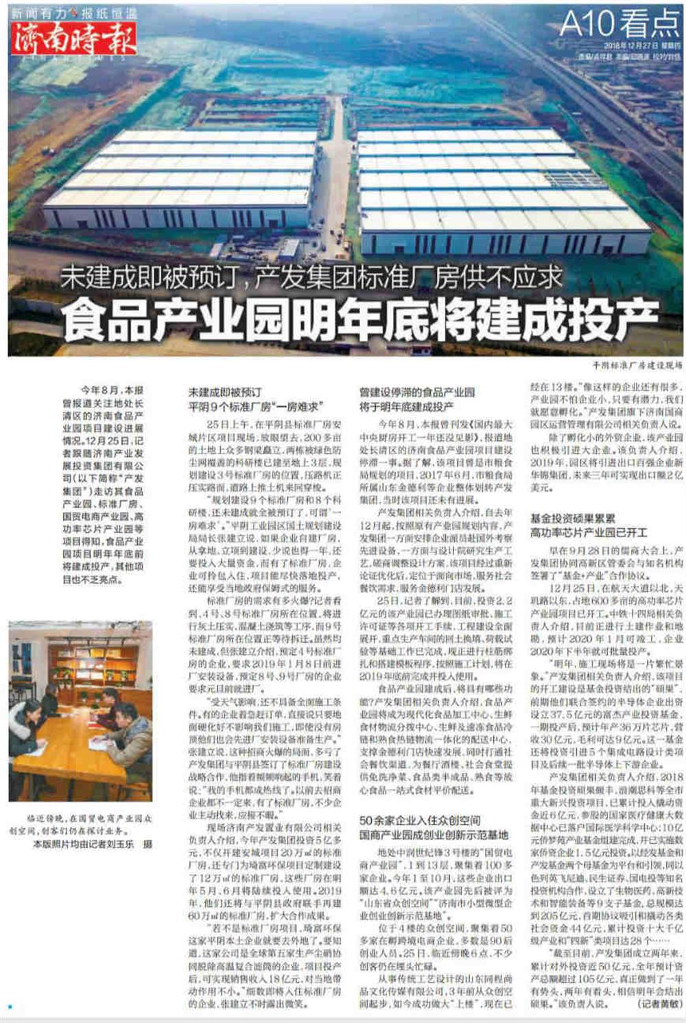 今年8月,本報曾刊發《國內最大中央廚房開工一年還沒見影》,報道地處長清區的濟南食品產業園項目建設停滯一事。12月25日,記者跟隨濟南產業發展投資集團有限公司(以下簡稱“產發集團”)走訪其食品產業園、標準廠房、國貿電商產業園、高功率芯片產業園等項目,得知食品產業園項目明年年底前將建成投產,其他項目也不乏亮點。