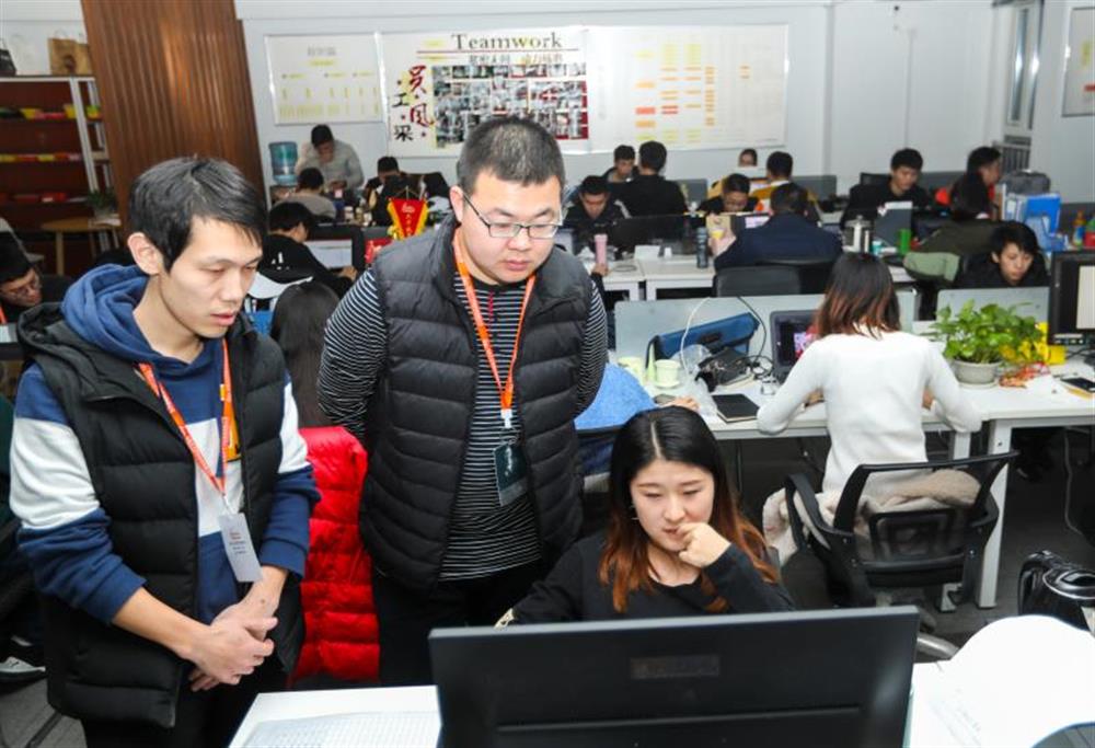 在4樓眾創空間,聚集著50多家在孵跨境電商企業,多數都是90后創業人員。25日臨近傍晚6點,不少創客仍埋頭忙碌。在眾創空間打造的咖啡吧,幾個年輕人正探討業務。
