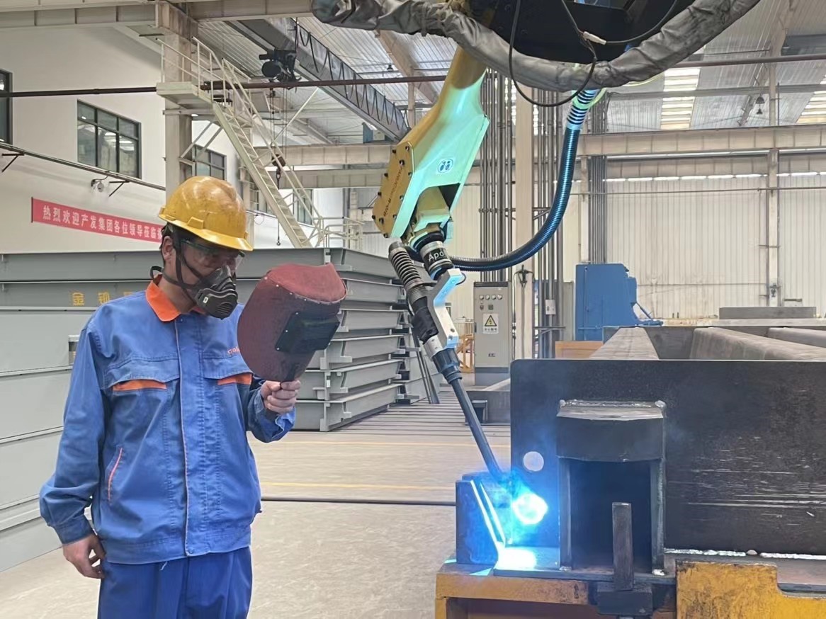 金鐘研發部門為提升汽車衡秤臺的承重強度,新設計了U型梁結構,經過試制和不斷推廣,訂單逐步增加,汽車衡班的工作壓力也不斷加大,而汽車衡的稱臺焊接成為了制約工作效率的瓶頸。為了能夠按時保質完成生產任務,黨支部組織成立“黨員編程突擊隊”,由黨員張慶力任隊長,突擊隊成員發揮模范帶頭作用,發揚匠心精神,成功解決了“汽車衡自動化焊接編程”和自動焊機在平臺底部尋位不準難題,最大限度地提高焊接機器人的效率。